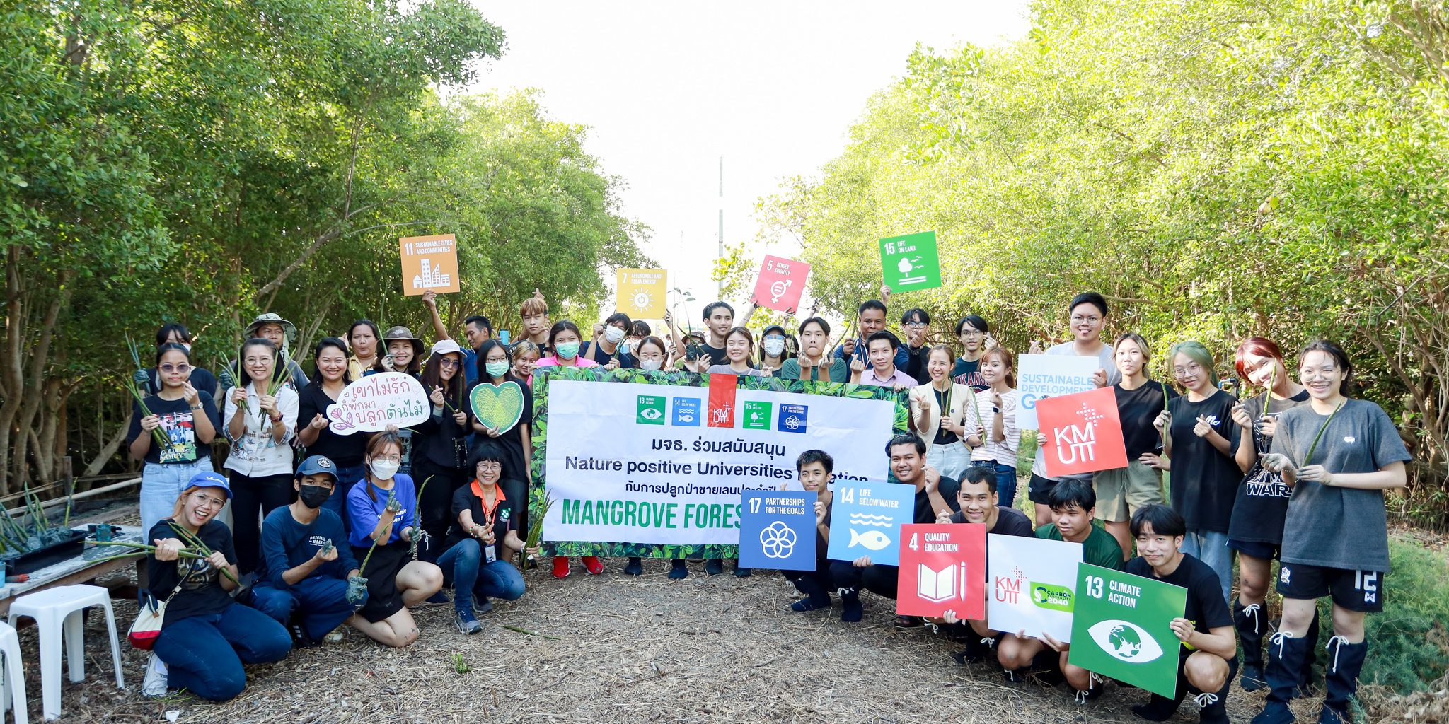 Forest Love Planting เนื่องในวันป่าไม้และวันน้ำโลก 2023 เมื่อวันที่ 22 มีนาคม 2566 ศูนย์การจัดการด้านพลังงาน สิ่งแวดล้อม ความปลอดภัยและอาชีวอนามัย (ศูนย์ EESH) ร่วมกับ สำนักงานบริหารทรัพยากรกายภาพ มจธ.บางขุนเทียน จัดกิจกรรม Forest Love Planting เนื่องในวันป่าไม้และวันน้ำโลก 2023 โดยมี รศ.ดร.สุวิทย์ แซ่เตีย อธิการบดี พร้อมด้วยคณะผู้บริหาร นักศึกษา บุคลากร และประชาคม มจธ. ร่วมกันปลูกต้นไม้ เพาะต้นกล้าโกงกาง และปลูกป่าชายเลนจำนวน 730 ต้น ณ พื้นที่ใหม่ มหาวิทยาลัยเทคโนโลยีพระจอมเกล้าธนบุรี ตำบลพันท้ายนรสิงห์ อำเภอเมือง จังหวัดสมุทรสาคร กิจกรรมดังกล่าวจัดขึ้นเพื่ออนุรักษ์และฟื้นฟูทรัพยากรของชาติให้กลับคืนสู่ความสมบูรณ์ และเกิดความสมดุลของระบบนิเวศ อีกทั้งยังช่วยลดผลกระทบจากการสร้างก๊าซเรือนกระจกที่เกิดขึ้น พร้อมกันนี้การดำเนินกิจกรรมดังกล่าวยังตอบสนองนโยบายตามเป้าหมายการพัฒนาอย่างยั่งยืนที่มุ่งเน้นและผลักดันโครงการการปล่อยคาร์บอนสุทธิเป็นศูนย์อย่างเป็นรูปธรรมเพื่อเป็นส่วนหนึ่งในการคืนกำไรสู่สังคมและโลกของเรา กิจกรรมนี้ส่งเสริมเป้าหมายการพัฒนาอย่างยั่งยืน เป้าหมายที่ 11 เมืองและถิ่นฐานมนุษย์อย่างยั่งยืน เป้าหมายที่ 13 สร้างความตระหนักรู้ถึงความสำคัญของทรัพยากรที่มีอยู่อย่างจำกัด รวมไปถึงการเตรียมพร้อมเพื่อรับมือกับการเปลี่ยนแปลงทางสภาพภูมิอากาศและผลกระทบจากภาวะโลกร้อน เป้าหมายที่ 14 อนุรักษ์ทรัพยากรน้ำและทางทะเล และเป้าหมายที่ 15 : ปกป้อง ฟื้นฟู และส่งเสริมการใช้ระบบนิเวศบนบกและน้ำอย่างยั่งยืน